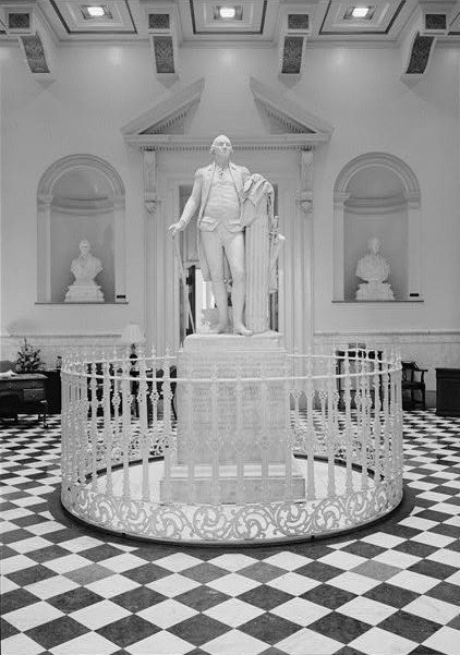The Capitol building remained intact until the Capitol disaster of 1870 in which a structural failure caused the destruction of the north end of the building. Following the catastrophe, the building was restored only to be completely gutted, renovated and enlarged with the addition of 1902-04. This addition, designed collaboratively by the architecture firms of Noland and Baskervill, Frye and Chesterman, and Peebles, consisted of the addition of front stairs and two wings with connecting hyphens, to house the Senate chamber and the hall of the House of Delegates.